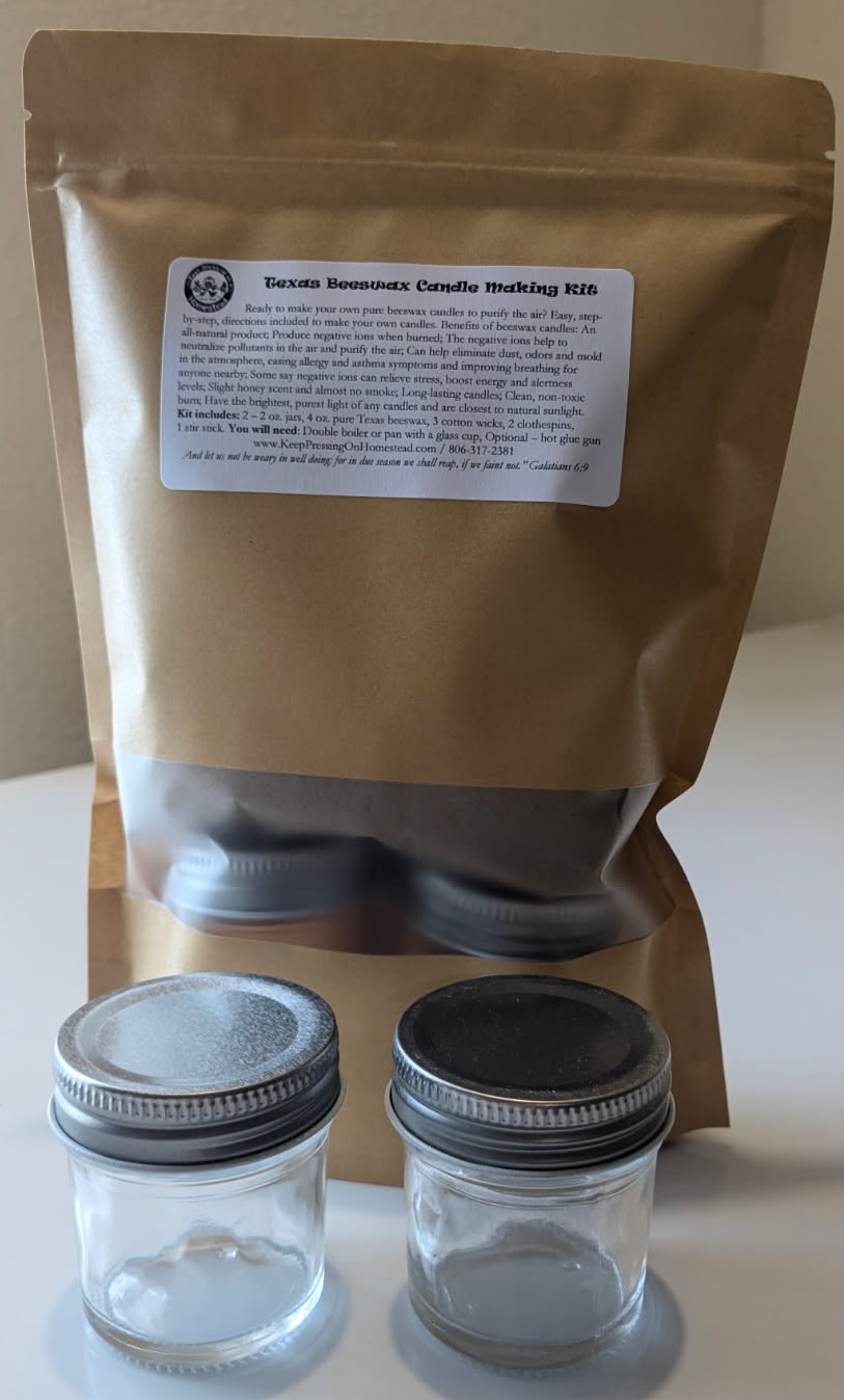 pure Texas beeswax, 3 cotton wicks, 2 clothespins, 1