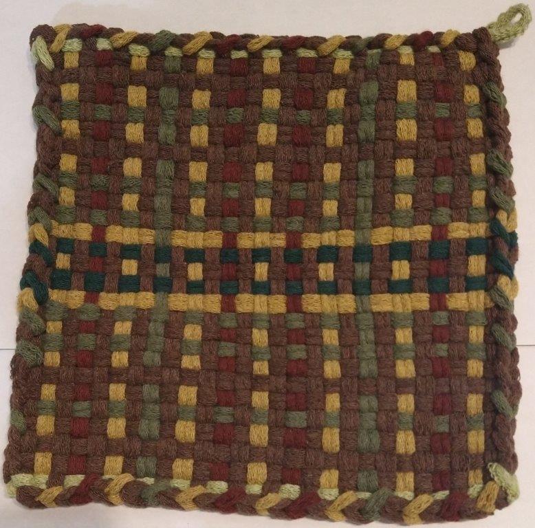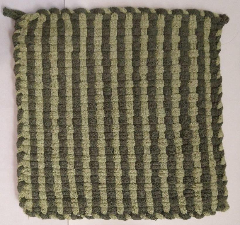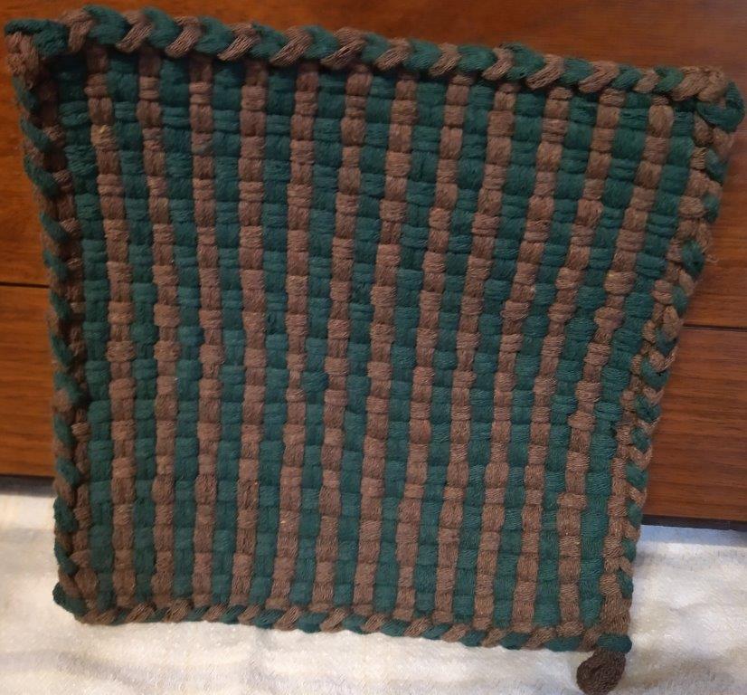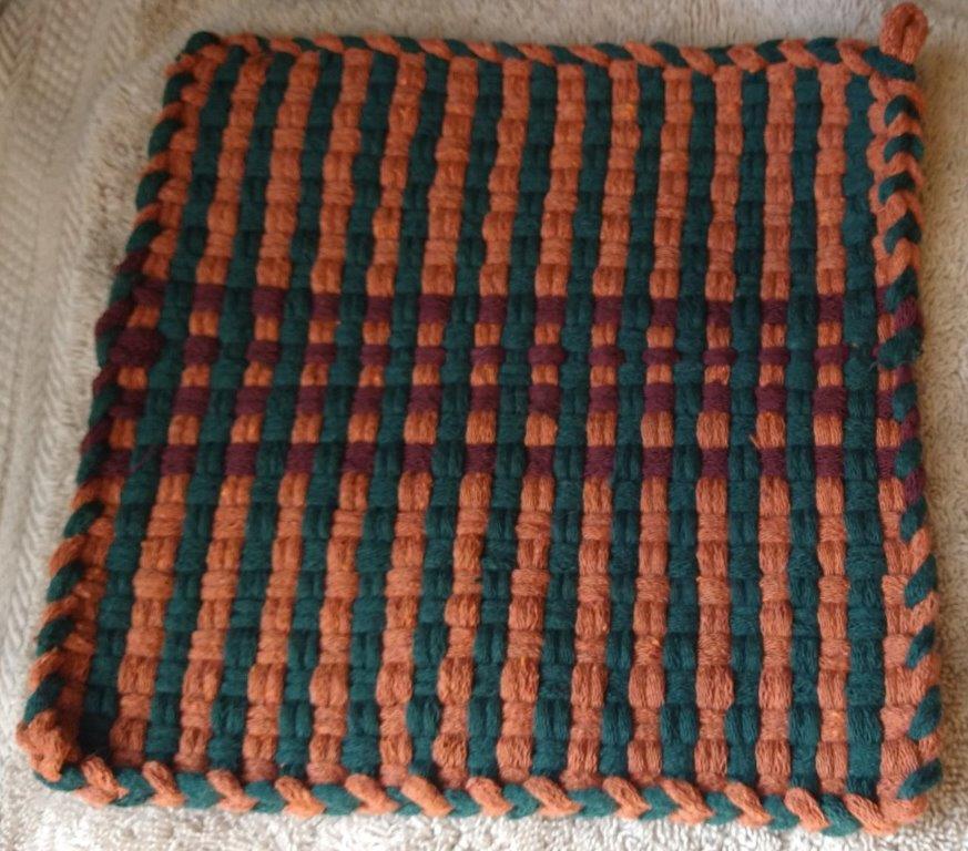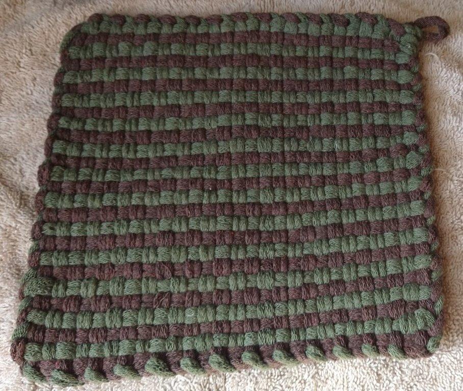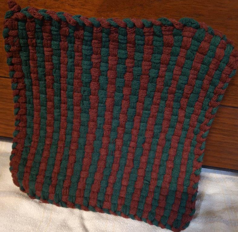 Hand Woven Large Cotton Potholder Green & Burgundy