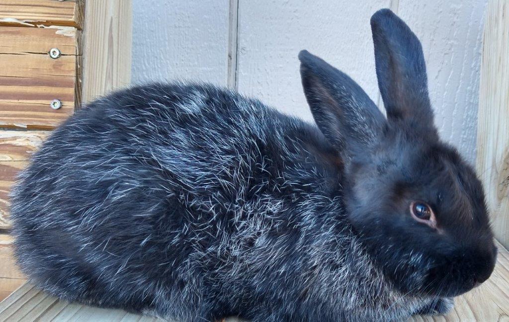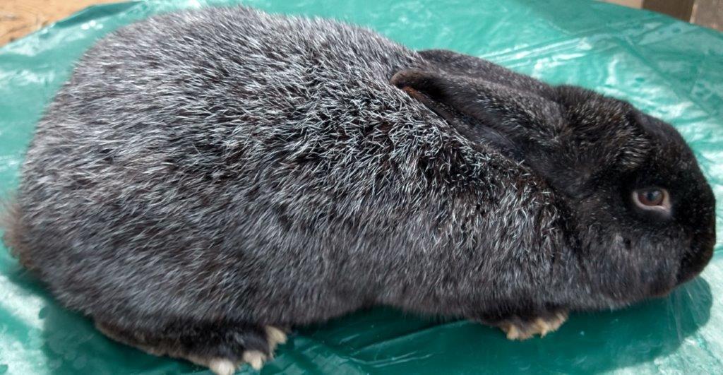 EJ is one of our Silver Fox bucks born March 2020. His black coat has