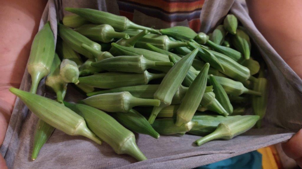 This is a green, productive okra that we enjoy. It has