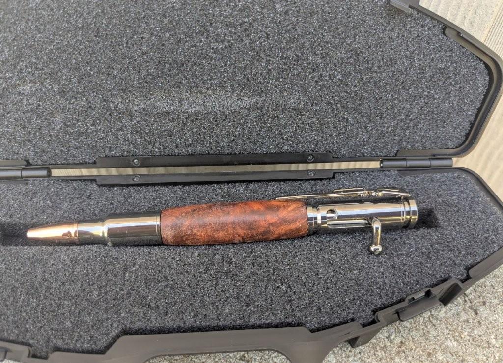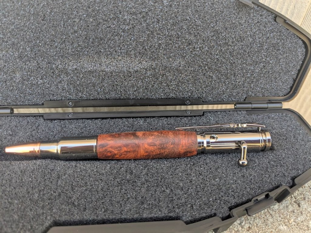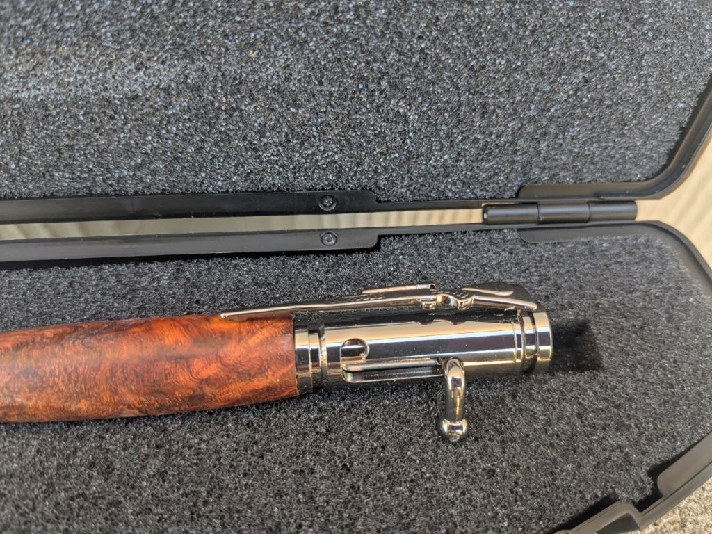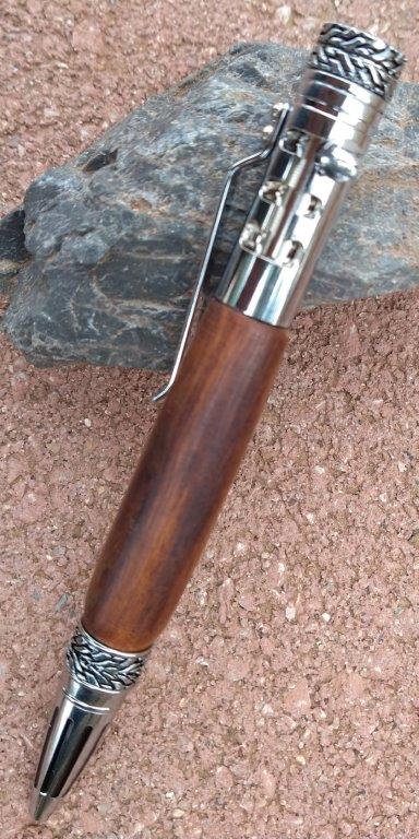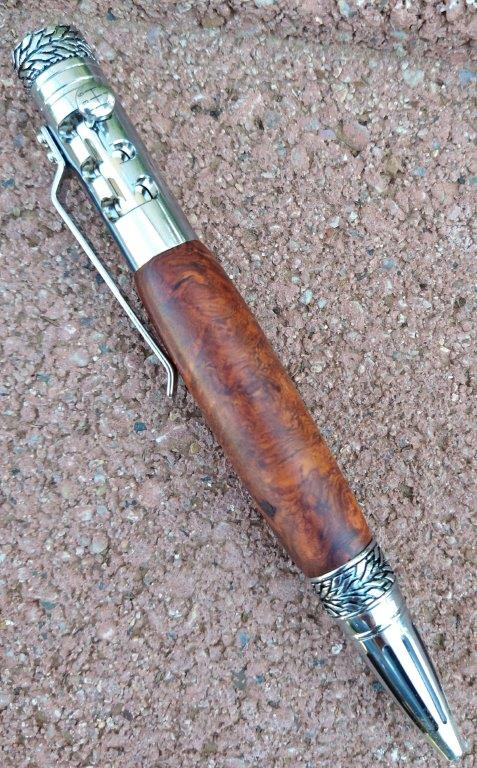 Super eye-catching pen handturned in the premium Amboyna wood.